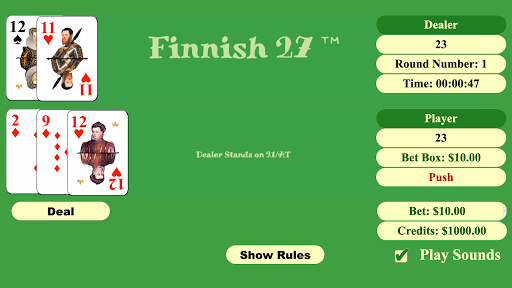 In this release, two of my earlier apps, Finnish 27 ™ and Big Slick ™ are merged into one app. People will now be able to play both from a single app !!! The earlier apps enabled people to play four different table-card games. The new app enables people to play the same four table-card games plus a new table-card game. The new table-card game is called 21-24-27.