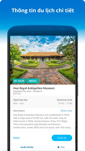 VN Travel Guide - это платформа приложений для поддержки туристов с информацией, контентом, изображениями в области культуры, Art & amp;История, наряду с важными утилитами для оптимизации пользовательского опыта в пункте назначения. VR и Audio Guide ... отображается на единственной платформе, для всех мест во Вьетнаме;Мульти -языку с системной презентацией, наукой и проверен. с голосом человеческого голоса нативно