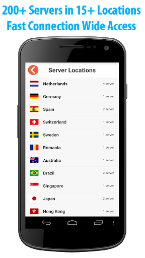 US, Canada, France, Italy, United Kingdom, Netherlands, Germany, Spain, Switzerland, Sweden, Romania, Australia, South Africa, Brazil, Japan, Hong Kong and Singapore servers available.