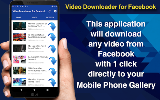This application will download any video from Facebook with 1 click directly to your Mobile Phone Gallery. Also you can see your downloaded videos inside the app. Now you can download any video uploaded by you, your friends or your group videos and page videos directly to your phone.