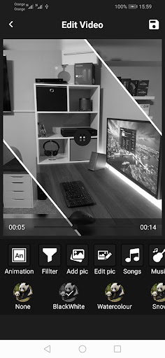 You can also add effects to photos, write them and combine images to get a video with a great music track of your choice without the Internet.