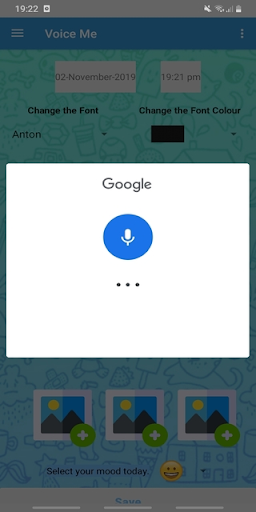 An E diary application with the implementation of security with PINs and Passwords, voice to text conversion where the user can talk to the application, Mood selection where the user can select the current mood of the user at the time of documenting the diary entry, adding the current location, capturing images, PDF converter where the user can save the diary entry in the PDF format for the user to print the diary entry in the future, font variations to make the application more interesting, back up the diary entries where the storage is stored in a variable memory and can be restored when the user needs the back up to be restored.
