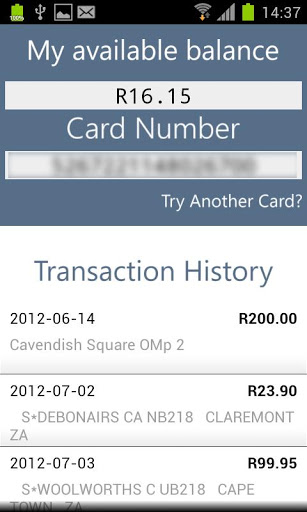 What's on my card is a convenient way to check the balance of your gift card. Simple enter the number displayed on the front of the card and the app will fetch your current balance and your transaction history.
