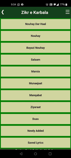 Nice app bro try to make another same app in urdu ,becoz tht app helps those who love to recite nohay,salam etc in URDU(specially the old peoples,marsiyakhan , nohakhan etc etc). may moula give you rewards.always zikr e karbala