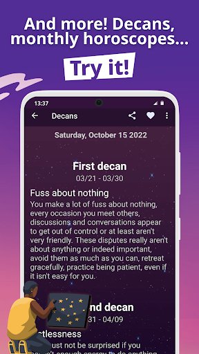 Want to know more ? We even give you access to the ultimate precision tool about your zodiac sign : a detailed view of your decan.