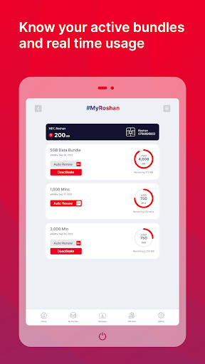 With My Roshan App, stay connected through Afghanistan’s largest telecommunications service provider anywhere inside the country and beyond. Download My Roshan App now to top-up, subscribe to your favorite internet and call plans or customize your own plan, and check your real-time usage.