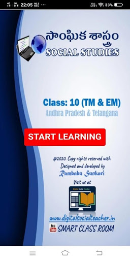 An Android application on SOCIAL STUDIES FOR CLASS 10 ((TELUGU & ENGLISH MEDIUM) with STUDY MATERIAL, WORK SHEETS, VIDEO LESSONS, DAILY TESTS, GRAND TESTS AND TEXT BOOKS. Daily and Grand Tests are available up to date in the
