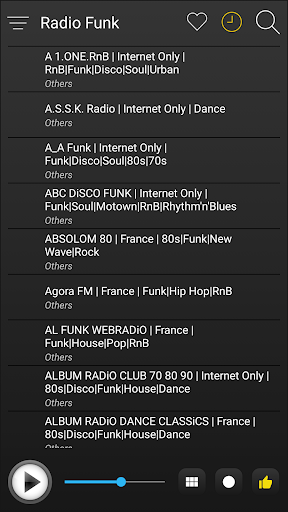 Funk Radio includes the most popular Funk radio stations all together for faster, easier listening and for free. You can quickly enjoy your favourite Funk radios by various categories in one click, instant playback and premium quality.