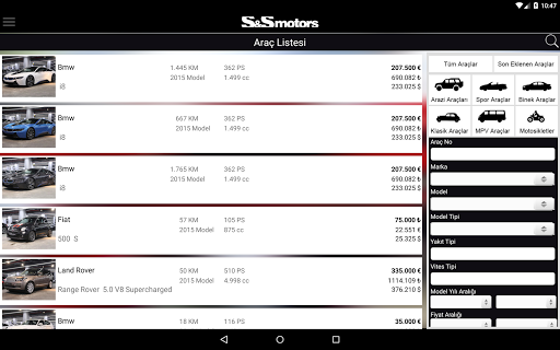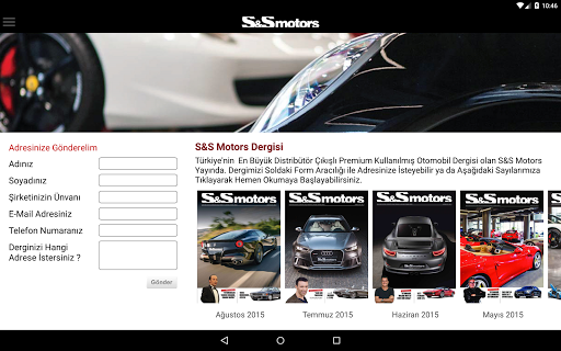 Türkiye’nin En Büyük “Sadece Distribütör Çıkışlı” Premium Kullanılmış Otomobil alım-satım hizmeti veren şirketi S&S Motors’un Resmi Tablet Uygulamasına Hoşgeldiniz.