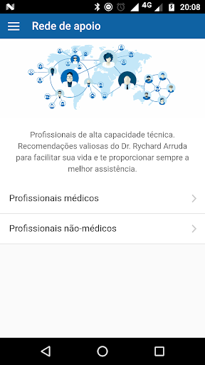 No aplicativo você irá encontrar uma lista de profissionais não médicos e médicos especialistas, organizados por suas especialidades. Estes profissionais são altamente qualificados e da inteira confiança do Dr. Rychard.