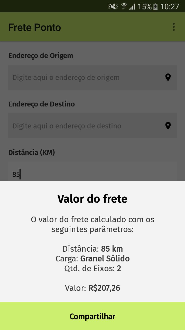 Informe os pontos de origem e destino, ou a distância percorrida em quilômetros, junto com a quantidade de eixos e tipo de carga para calcular. Compartilhe facilmente os resultados!
