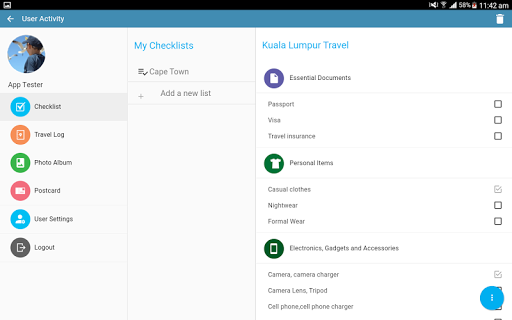 • Comprehensive set of utilities and tools that will help you plan your trip. Organize checklist, send postcards, bringing a collection of useful travel apps within a single app.