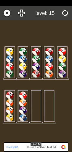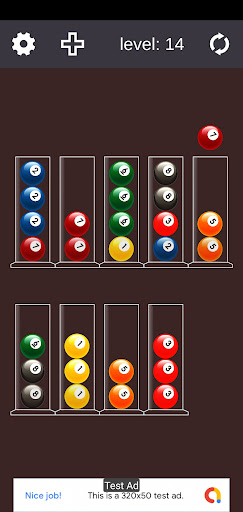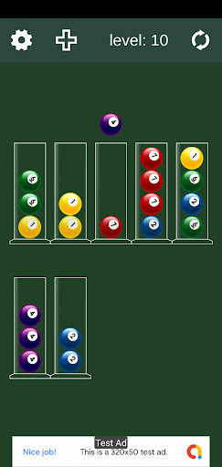 It's a fun and addictive colorful billiard balls with sorting game that's suitable for relaxing and sharpening your mind at the same time. Just tap the colorful pool balls and sort the colored in the tubes until all the same colors are together in the same tube...
