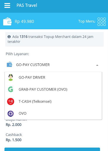 - Isi Ulang GOPAY(Customer dan Driver) dan GRABPAY