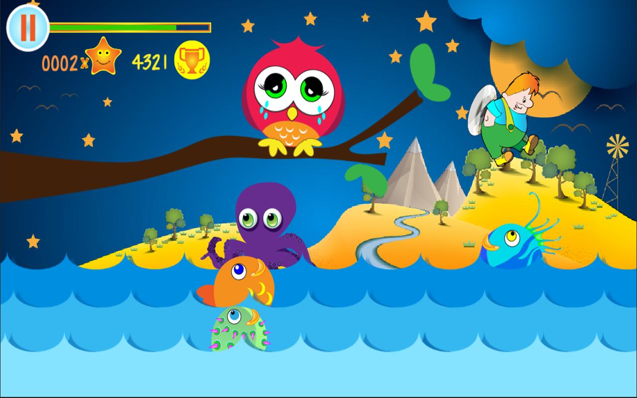 ✬ Lift mood owl by clicking on the fishes, not allowing them to spit in it