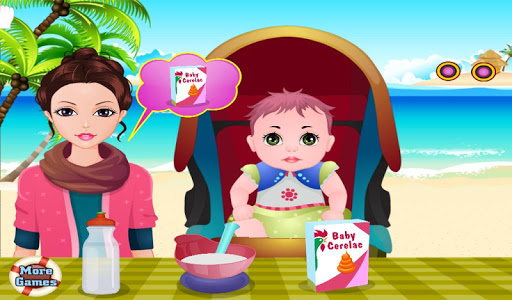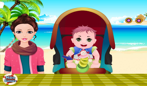 They arrived at the beach. Baby is crying you have to help her. Wash the baby with water and soap. Change the diaper, apply powder, and moisturizer. Choose an outfit very beautifully