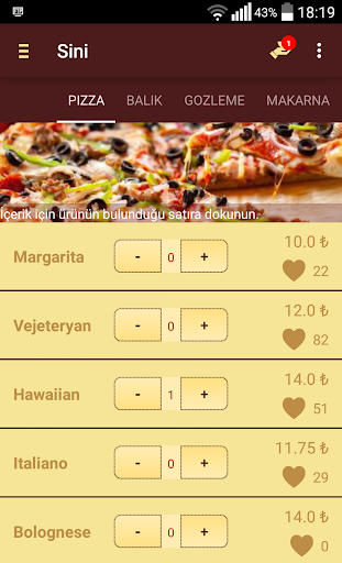 2. Menü den siparişinizi seçin.
