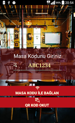 1. Masanızın üzerindeki Kodu Sini'ye girin veya masanızdaki "QR Code"u okutun.