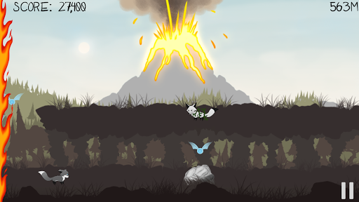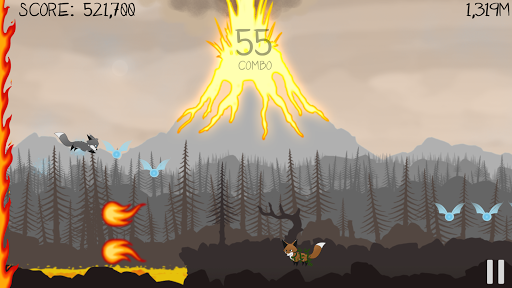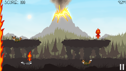 Help Hanzo the fox flee the forest fire as the volcano erupts. On his escape path he will need to avoid the fire spirits and fireballs created by the volcano, whilst being wary of other obstacles along the way. Hanzo will also encounter trapped foxes from his village, so its up to him to save them as he tries to escape.