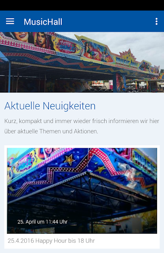 są wszystkie wiadomości o naszych miejscach, w których stoimy, zajęcia wokół hali muzycznej i imprez specjalnych. Jesteśmy szczęśliwi z twojej wizyty i życzymy dużo zabawy z naszą aplikacją