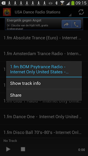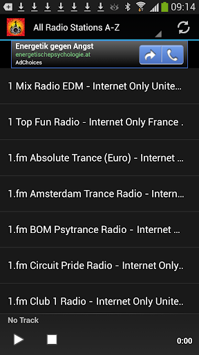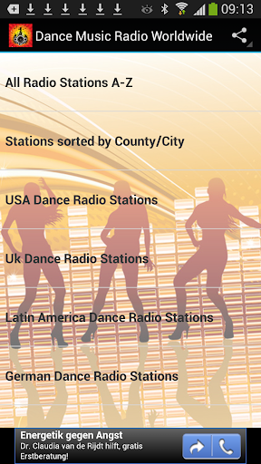 Dance Radio Stations are sorted A-Z and countries