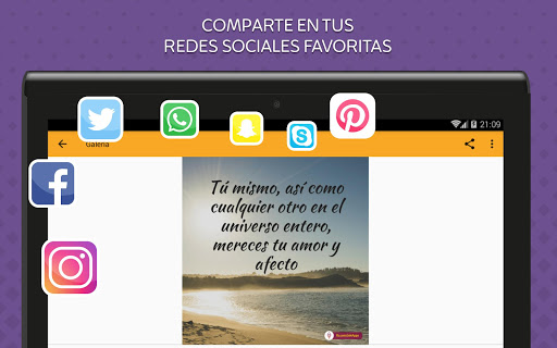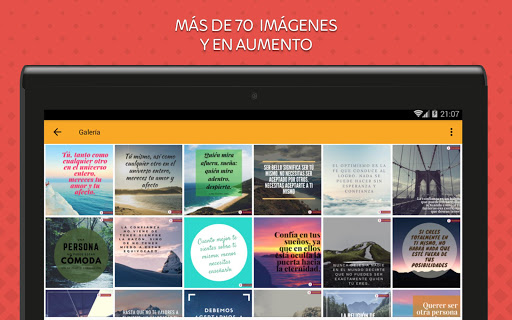 с нашим приложением, вы можете насладиться широким разнообразием изображений и фраз. С помощью которого вы можете дать это слово поощрению тем, кто ему так нужен. Мы гарантируем, что вы будете чувствовать себя полностью идентифицированы, поскольку каждый из фраз преодоления и мотивации, которую мы предлагаем, были созданы, думая о вас, поэтому вы обнаружите, что идеально настроены для вас и ваша ситуация. Дайте своим любимым и важным существам вашего жизнь лучшими фразами преодоления и мотивации, чтобы покорить эту цель и цель, которая была поднята. Воспользуйтесь возможностью поделиться с вашей семьей, специальными людьми и друзьями. Помните, что они не занимают много места, поэтому вы можете скачать время, которое вы хотите на ваших устройствах и мобильном телефоне.