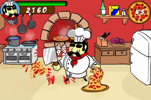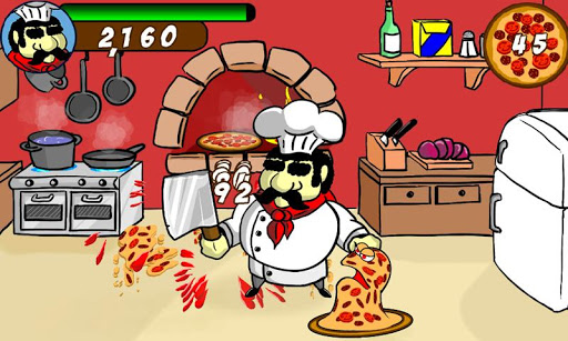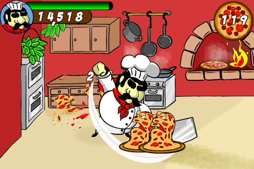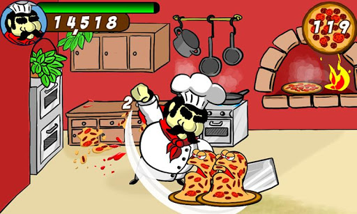 zombie kind monsters hungry for human flesh. Only Superhero Chief Francesco Pepperoni can fight restless Pizza zombies and save humanity from being eaten alive. Help him to stop zombie pizza invasion with knife, roller bin and other powerful kitchen weapons.