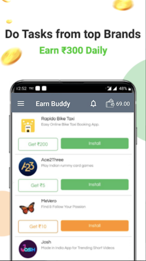 A) Complete tasks: There are lots of simple money earning tasks in Earn Buddy like doing app installs, completing surveys, playing games, check daily horoscope, Puzzle Task etc.. You can earn huge rewards by spending 10 minutes per day on the Earnbuddy app.