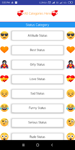 (Status) Attitude status, Best status, Girly Status, Love Status, Sad Status, Funny Status, Serious Status, Rude Status, Valentine Status, Life Status.