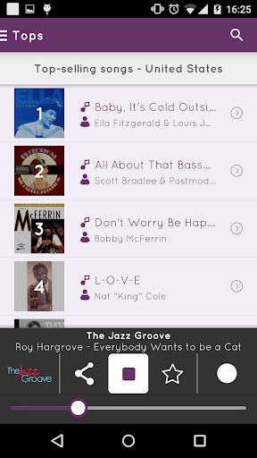 - Check the top selling jazz music songs per country each day, so you can listen to a preview and check if you want to buy it