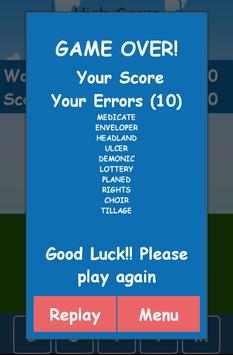Learn Mode – Here you may be free from any restriction and your main aim becomes to be told the spellings. Complete as several words as you wish to then hit stop button to finish game. Error List additionally show all of your errors while not having to travel premium. there's no evaluation concerned during this mode.