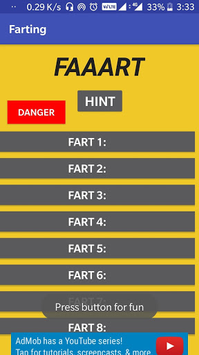 This app consists of various buttons that can be used for producing various different sounds. And it alsocontains a hint button. This app only deals with entertainment.