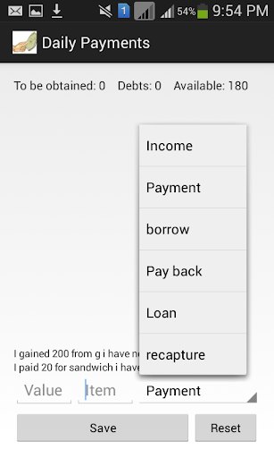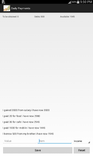It keeps Last 20 events as income, payment, borrow, payback, loan, recapture