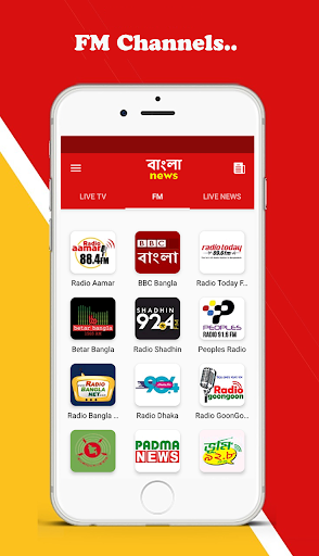 Radio Foorti, Dhaka FM, Radio ABC, Aamar, Bbc Bangla, Radio Hoy FM, Betar Bangla, Radio Shadhin, Radio de los pueblos, Radio Bangla Net, Radio Dhaka, Radio Goongoon HD Sound, Bangladesh Beta, Radio Padma, Radio Bhumi, Radio Capital, Radio Ekattor, Bangladesh Betar, Bangla Wadio, Fnf.fm Bangla, Spice FM