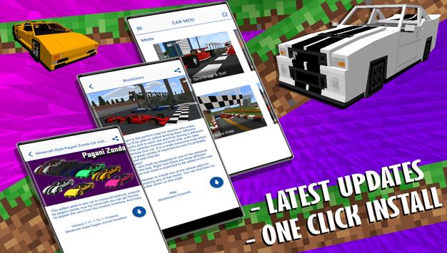 In the application you will find a bunch of cool mods and maps, such as Pagani Zonda mod, Ford Mustang Vehicle mod, Sports Car mod, Motorcycle Addon, Racing Track map, BlockGears (Block Gears) map and other. You will get an unforgettable experience after playing with new mods on new maps.