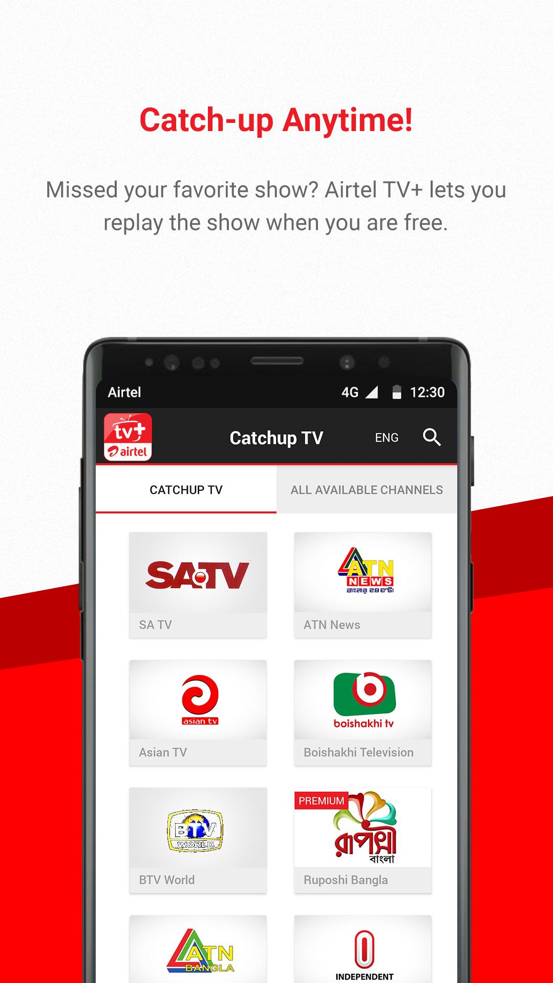 1. Watch live TV channels at your convenience with catch up facility. If you miss or remain busy during your favourite show, watch it later on Airtel TV+. (within 24 hours, on Independent Television, Probashi Bangla TV, Boishakhi, and Ekattor channels only)
