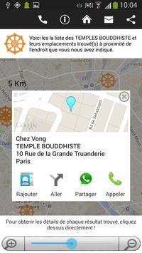 L’application TEMPLE BOUDDHISTE est l’outil indispensable pour trouver le temple ou la pagode le plus proche de l'endroit où vous vous trouvez. Peu importe le pays où vous êtes, ouvrez l’application TEMPLE BOUDDHISTE, placez-vous sur la carte ou entrez l’adresse de votre choix, et trouvez le temple ou la pagode le plus proche.
