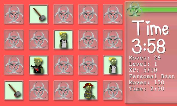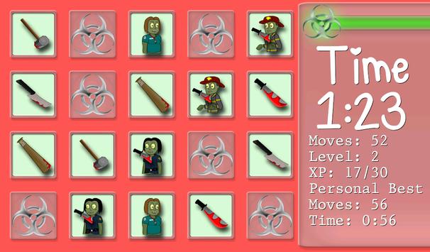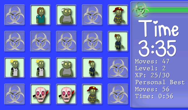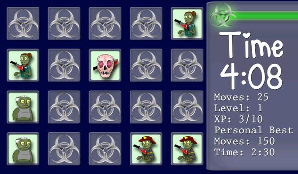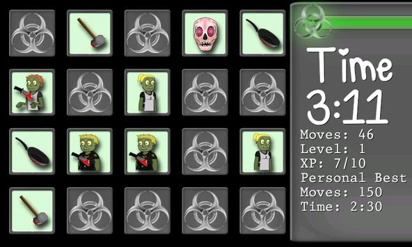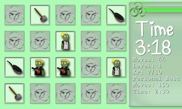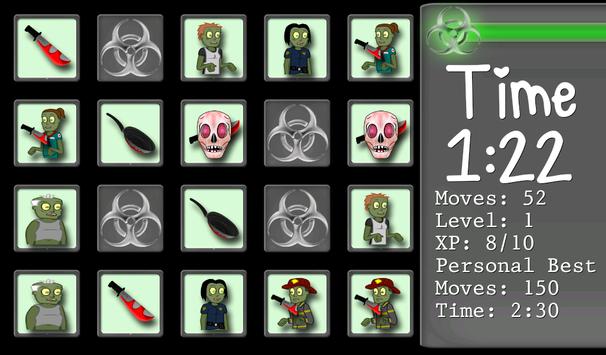 Match the Zombie faces and Zombie Weapons as fast as you can, in as little moves as possible.