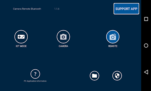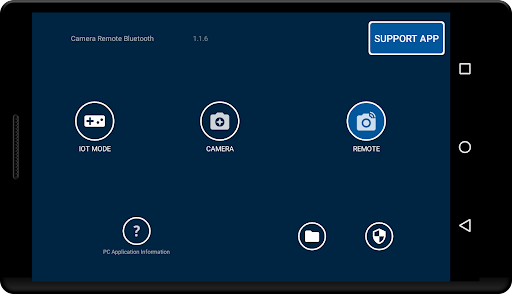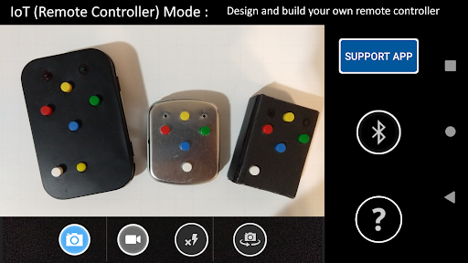 IoT Mode (DIY Remote Controller), custom remote controller mode, is available without using multiple android devices. Install app in one android phone, and use remote controller (or, bluetooth camera) to control remote android cameras.