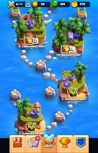 You never know when you’ll have to battle against other enemies. Quest and progress through various undiscovered islands, using combinations of clash quest troops to defeat the defenses and bosses.