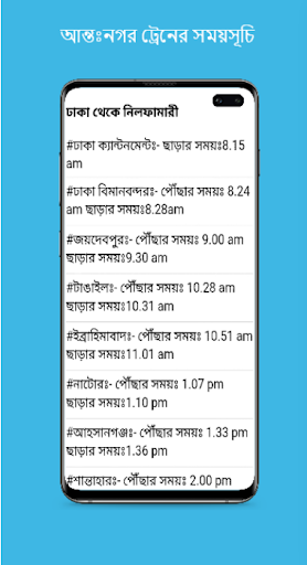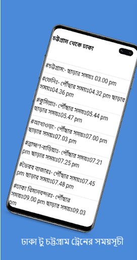 Bu uygulama Bangladeş'in tren programında.Burada Bangladeş ve Bangladeş'in tren programını bulacaksınız.Burada tren bilet uygulamaları ve kurallarının detaylarını çevrimiçi olarak bulacaksınız.
