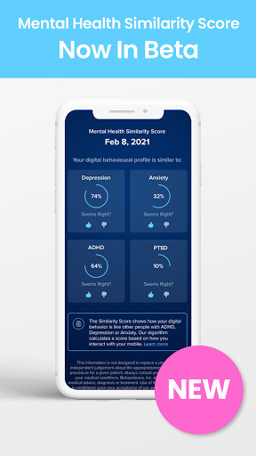 Your Mental Health Similarity Score shows you how closely your digital behavior is like other people with ADHD, Depression or Anxiety.