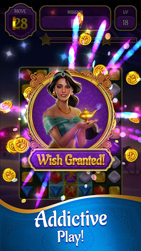 Play magical match 3 puzzles to retrieve gems, jewels and of course the magic golden lamp and have your biggest wishes come true! Embark on an adventure you will never forget in search of genies & gems, jewels & gold, fun & entertainment!