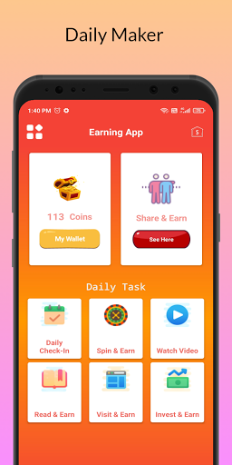 Besides that there are a lot of easy tasks, play games(money earning games), read news, check in daily , Watch videos, Spin wheel Task and complete website watching tasks to earn money. Each task has a big cash reward, and you can earn real money i.e. earn hundreds of Rupees in Wallet Cash everyday through Daily Maker, India's best money earning app(free paise kamane wala app).