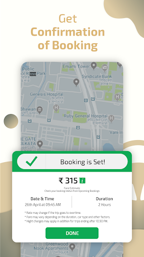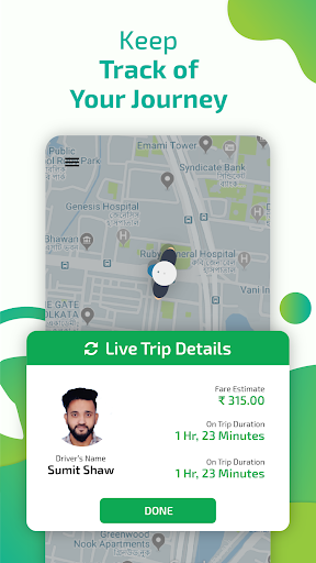 - You can view the current fare, elapsed time on the app, along with the driver's live location throughout the trip.