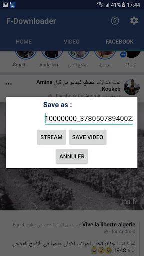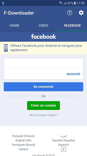 F-DowloaderアプリケーションFacebookのみではなく、Facebookの公式アプリケーションではありません。Facebookでこのアプリケーションを使用します。