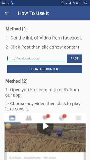 F-Dowloaderアプリケーションは、Facebookから簡単かつ高いセキュリティからビデオをダウンロードしてダウンロードできます。また、アプリケーション内でアカウントを閲覧することができ、ダウンロード機能はダウンロードされてロードされるビデオのみを押すことで非常に簡単です。携帯電話や外部カードのパスを選択する可能性は、後でビデオを見ることも、デバイス上のアプリケーションを介して友達と共有することもできます。