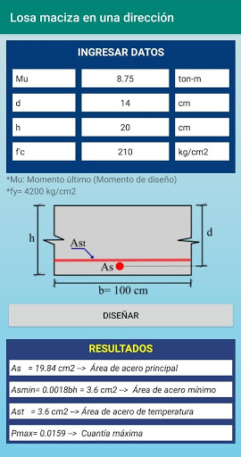 Esta aplicación (Diseño en concreto armado - concreto reforzado) es una herramienta útil para diseñar elemento de concreto armado, ademas de contener conceptos teóricos y ejercidos prácticos de diseño, la que permitirá al usuario tener un control total de la metodología de diseño empleada en la aplicación.