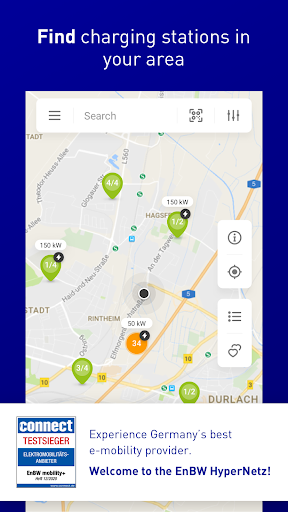 EnBW mobility is the smart all-in-one solution for your eMobility. Our Electric Vehicle (EV) copilot offers three functions in one app: find charging stations, charge your EV while simultaneously paying for it, and take EVs for virtual test drives.