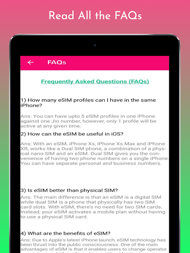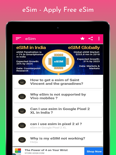 Have you get your Free eSim ? Now eSim card is available in almost all countries around the Globe.You can apply for a new eSim card using eSim - Apply Free eSim app. Enjoy all the facilities of eSim now in your phone. Get all the latest information about eSim. All the frequently asked questions about eSim are cleared in this app. You can also ask your questions directly to our team using this eSim - Apply Free eSim app.